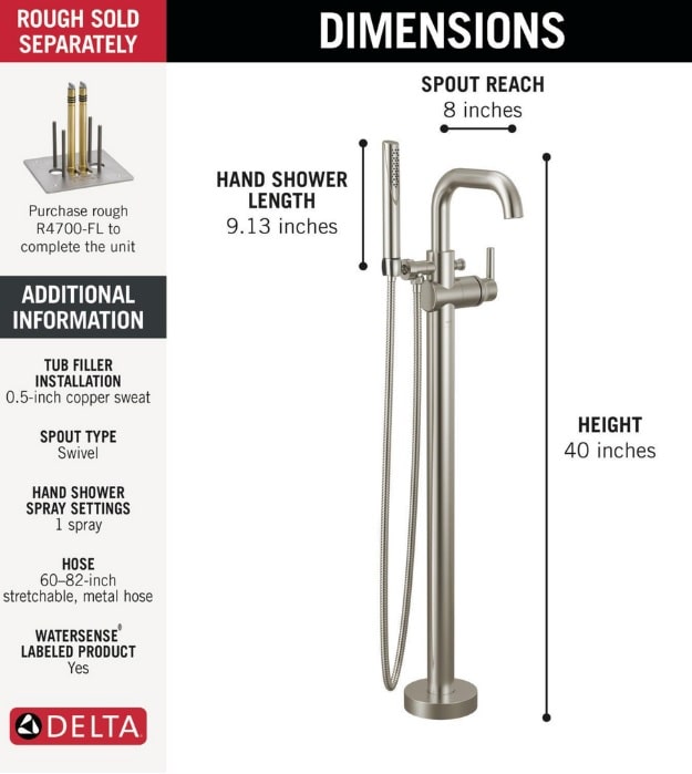 Delta Trinsic Floor Mount Tub Filler T4754-FL Features: