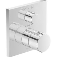 Duravit C.1 thermostatic bath faucet is a quality and chromed finished rough-in central unit that is designed to control the shower head and the tub spout. Its functional, simple and contemporary in design with a dual control knobs for water temperature and pressure adjustments. Also the trim which is the visible and decorative part of the shower set, mounts on the wall for a complete and seamless shower set look. This model has no bath spout diverter and only controls 1 outlet. The rough-in is not included.