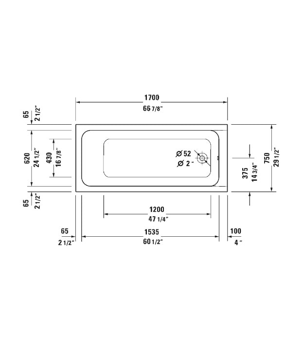 Duravit D-Code Drop-In Bathtub 700100 67″x30″ Features;