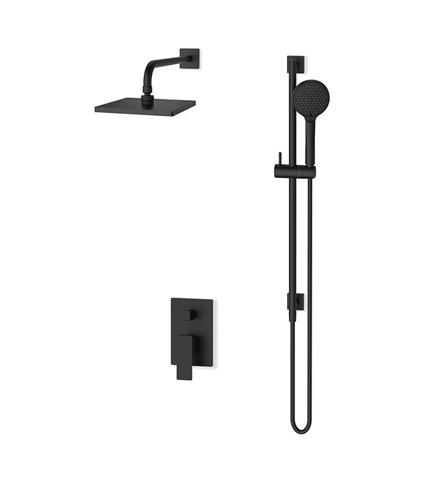 The Fluid Quad shower trim kit F162025T with FA803 Slide Bar and an 8″ Rain Shower creates a soft, rain-like experience that’s perfect for winding down, designed to mimic the soothing feel of a natural rain shower. Fluid Quad Shower Trim Kit is a reliable pressure balance system with quality European made cartridges ensuring long lasting performance.