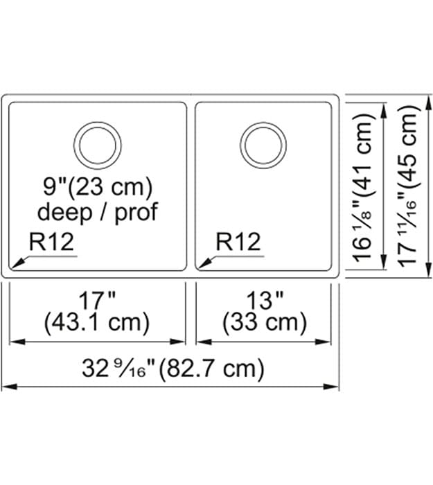 - Overall Sink Size (OD) 32 x 17