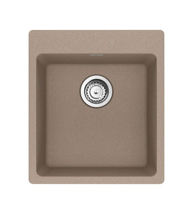 The Franke Maris MAG61015-S is an undermount single bowl Fragranite kitchen sink designed to deliver durability and contemporary elegance. Finished in Champagne, this compact yet deep bowl configuration offers excellent space for everyday kitchen tasks. Crafted from premium granite composite, it resists scratches, stains, fading, and impact while maintaining its refined appearance. The rear drain placement maximizes usable bowl surface and enhances cabinet storage below.