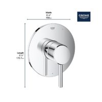 Grohe Concetto pressure balance bath valve trim is a quality and sleek rough-in shower central unit that is designed to control both the volume and temperature of water with one handle. The dial sets the stopping point for the handle for the ratio of hot and cold water as well as the pressure. Its functional, simple in design and easy to use with single lever. Also the trim which is the visible and decorative part of the shower set, mounts on the wall for a complete and seamless shower set look.