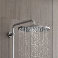 Mono 310 12″ inch shower head offers single rain spray mode with a great area of coverage. Grohe Euphoria hand shower in this provides 3 different spray modes for full shower indulgence. Furthermore, Both the shower head and the hand shower feature Grohe DreamSpray technology which creates optimal water distribution for an unparalleled showering experience.