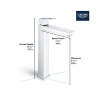 Grohe EuroCube single-handle vessel faucet is a quality, stylish and modern single-hole lavatory faucet. This faucet has a long solid body and a high spout for water spray with a single-handle lever that controls both the water temperature and pressure. Vessel sinks are a specialty bathroom faucets that are designed with a long body combined with an easy to access handle to reach over the countertop washbowls or free standing basins. One faucet hole is required on the countertop or the bathroom vanity to install this faucet.