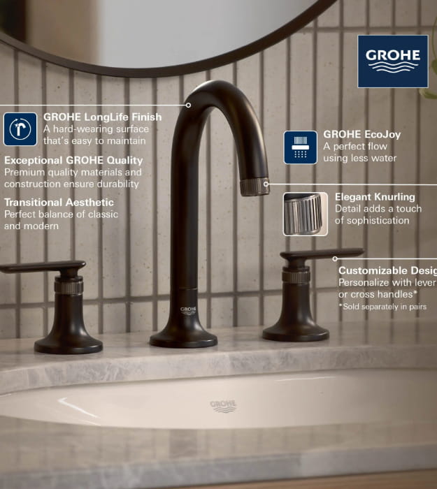 Timeless, transitional, and a testament to GROHE excellence, the GROHE Listra 8” Widespread 2-Handle Bathroom Faucet,106221, invites a closer look. This exceptional faucet embodies transitional design and allows for customization with a choice of cross or lever handles, sold separately, to create a truly bespoke bathroom sanctuary. Part of the sophisticated GROHE Listra collection, this exquisite widespread faucet is defined by softly sculpted lines, gentle curves, and a subtle knurling texture reminiscent of fine jewelry. It promises to elevate your bathroom with refined beauty and enduring quality.