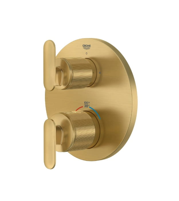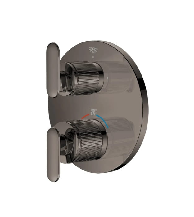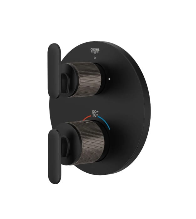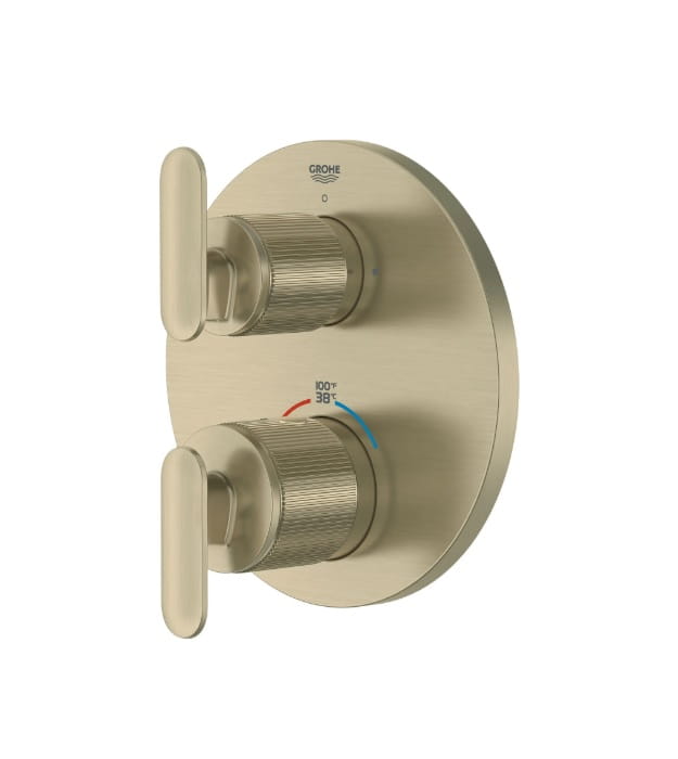 Timeless, transitional, and a testament to GROHE excellence, the GROHE Listra Grohe Listra 106244 Thermostatic Shower Valve invites a closer look. Beautifully detailed, this trim embodies transitional design with its gently curved lever handle and subtle knurling texture reminiscent of fine jewelry. Engineered for more enjoyable showering, this thermostatic trim features an upper handle with 2-way diverter to easily switch between 2 shower outlets, and a lower handle to control temperature, keeping it consistent throughout your shower. Part of the sophisticated GROHE Listra faucet collection, Grohe Listra 106244 Shower Valve promises to elevate your bathroom design with refined beauty and enduring quality.