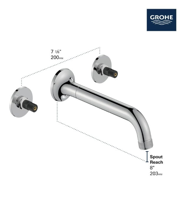 Timeless, transitional, and a testament to GROHE excellence, the Grohe Listra Wall-Mount Bathroom Faucet 106216 invites a closer look. This exceptional faucet embodies transitional design and allows for customization with a choice of cross handles (106238) or lever handles (106257), sold separately, to create a truly bespoke bathroom sanctuary. Part of the sophisticated GROHE Listra collection, this exquisite wall-mount faucet is defined by softly sculpted lines, gentle curves, and a subtle knurling texture reminiscent of fine jewelry. It promises to elevate your bathroom with refined beauty and enduring quality. Handles sold separately