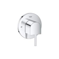 Grohe Plus 2-way diverter trim connects to a pressure balance valve and moves using a single handle in order to change the direction of the water flow. The pressure is balanced by the pressure balance trim on a sliding disc which reacts to pressure ratio changes.