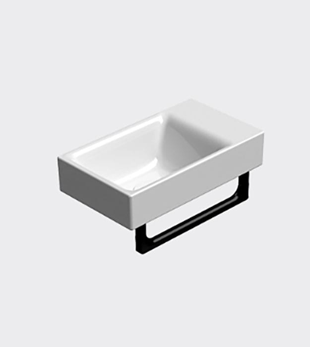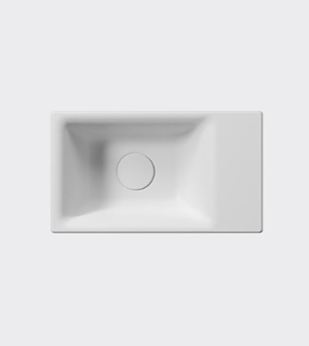 GSI Nubes 40×23 Single Bowl Wall-Mount Sink 9636011-Rectangular washbasin without overflow hole 40×23 cm, prearranged for one taphole on right or left. Made with special Extraglaze® Antibacterial enamel, the wall-hung or built-in washbasin Nubes 40×23 may be fitted with a drain with a ceramic finish. Also available in Ardesia and Matt White finishes.