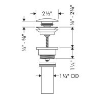 Hansgrohe push open sink drain 50100101 is designed for use in sinks with an overflow. The drain has a 1-1/4″ OD and 2-1/2″ diameter cap.