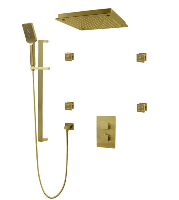 The Kodaen Diamond F57123-FM16ASB4 is a refined 3-way thermostatic shower system with a flush mounted ceiling installation. Engineered for seamless integration, it provides precise temperature stability and a clean, minimalist 16″ ceiling mount rain shower head. Kodaen Diamond F57123-FM16ASB4 also offers 4 body jets for more spa like experience.