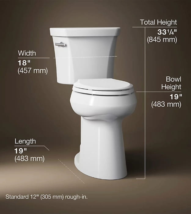 Kohler Highline Tall K-25224-0 Two-Piece Elongated Toilet Less Seat Features: