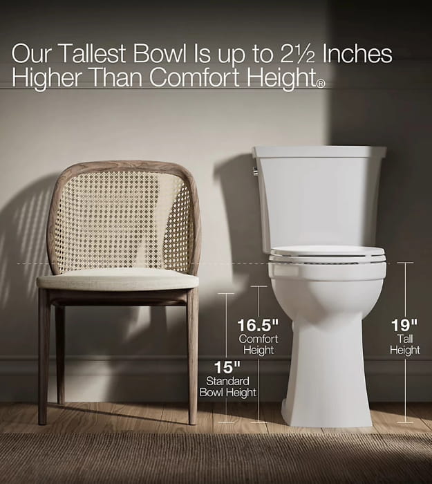 - 19″ Tall height offers seating 2-1/2″ (63.5 mm) higher than Comfort Height for enhanced comfort