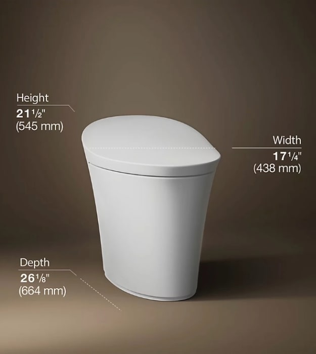 Sculpted with flowing and balanced curves, the Kohler K-5401-PA-0 Veil Compact Smart Toilet elongated pairs bold minimalist style with the comfort of personal cleansing. Pump-assisted flushing delivers peak flush performance every time. A full suite of convenient features of Veil Compact Smart Toilet includes heated seat, nightlight, hands-free opening/closing and automatic flush, plus a touchscreen remote. With emergency backup flushing at the touch of a button, you’re always covered in the event of a power outage.