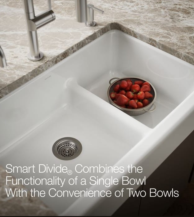 - Smart Divide® feature offers a lower bowl divider that increases workspace versatility