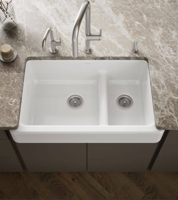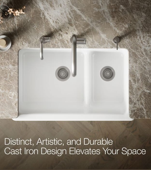 Crafted from enameled cast iron, Kohler Whitehaven sink resists chipping, cracking, or burning for years of beauty and reliable performance.