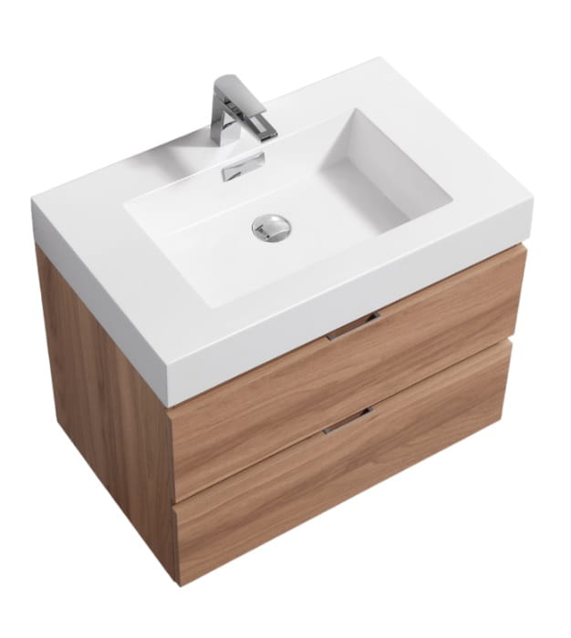 The Bliss BSL24 is one of the most elegant modern Bathroom Vanities around. This 24 Inch model comes with a reinforced Acrylic sink, Marine Wood Veneer Constructed Console that is fully moister and water proof, with high quality European Hardware, that provides smooth soft-closing operation drawers.