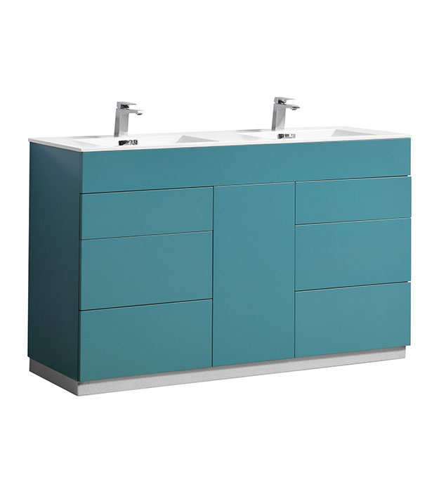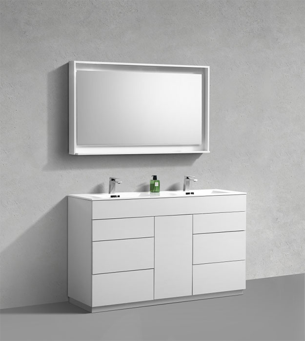 Milano 60″ Double Sink Floor Mount Modern Bathroom Vanity – KFM60D Features: