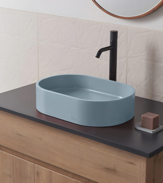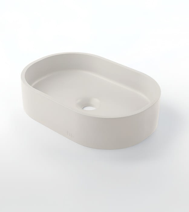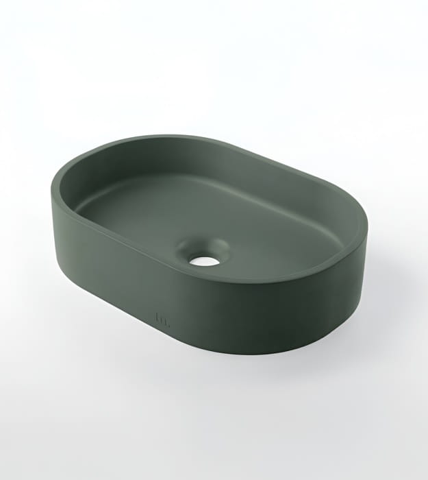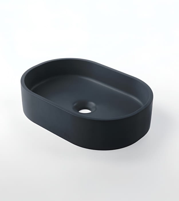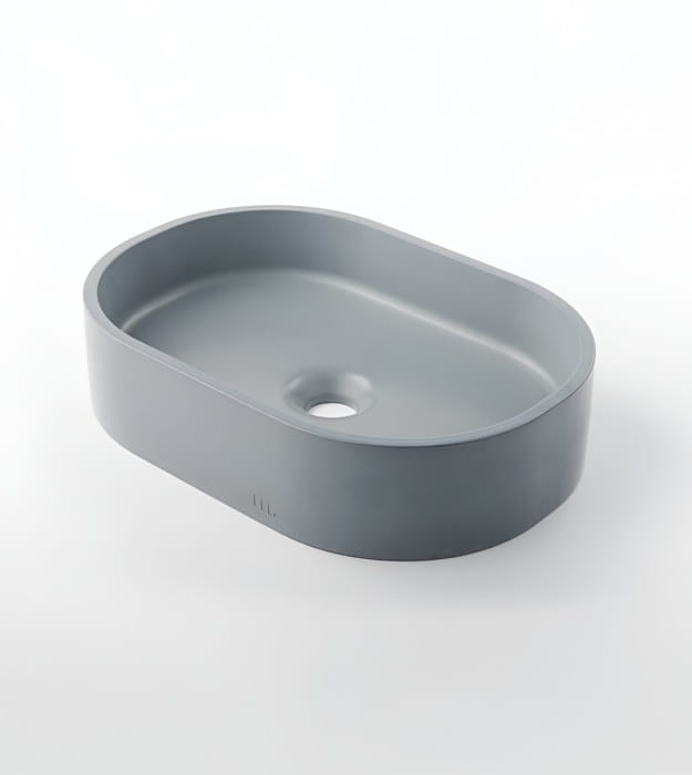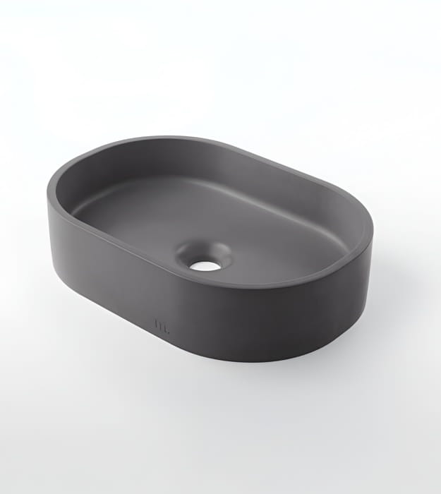 Mudd Parro Capsule 18″ Concrete Sink is a modern oval sink with cascading shadows and soft highlights. The Mudd Parro Capsule 18″ Concrete Sink provides ample sink coverage and a versatile width that fits various vanity sizes and fixtures.