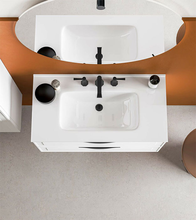 Crafted in eye-catching high-gloss white porcelain, the Porto collection can match your unique style and faucet preferences, adding a touch of personalized elegance to your bathroom.