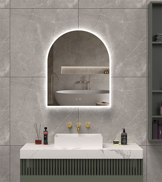 The ICO Gemma 30″ x 36″ LED mirror is a beautiful addition to any bathroom, and has both front and back LED lighting. This model has a flat bottom, making it very unique and also practical for above a tall or wall-mounted faucet.