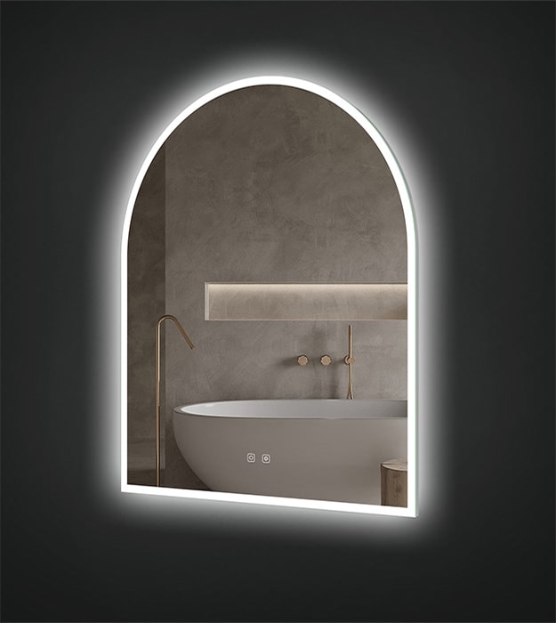 All ICO LED mirrors are dimmable, color temperature adjustable, and come with a 5 year warranty. All controls are touch activated, but can also be connected to a light switch if you want. The glass is copper free and has a safety film backing which holds the glass in place in case of shattering.