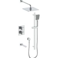 Vogt Kapfenberg thermostatic shower trim TM.AP.320.320 is a 3-way shower system with a 10″ modern shower head, and a 31 1/2″ shower bar with a hand-shower.