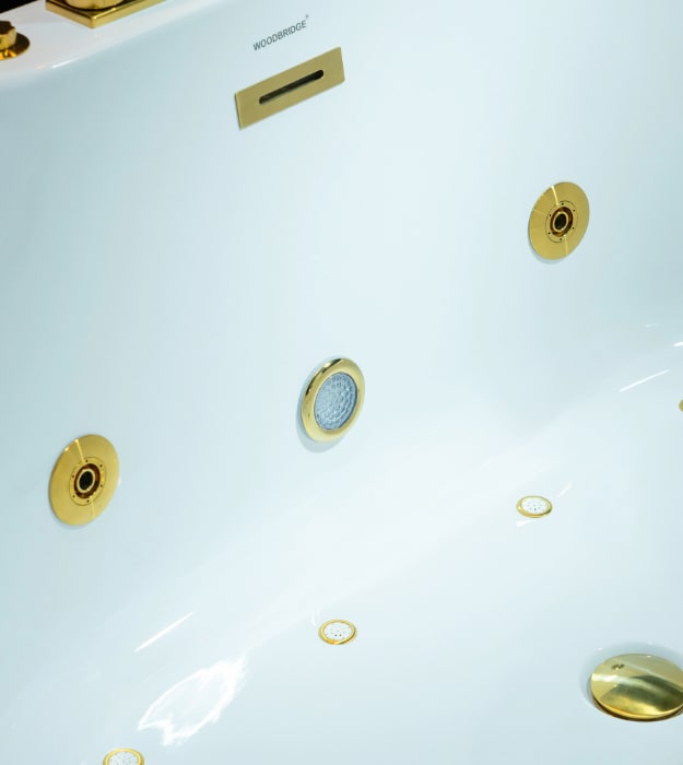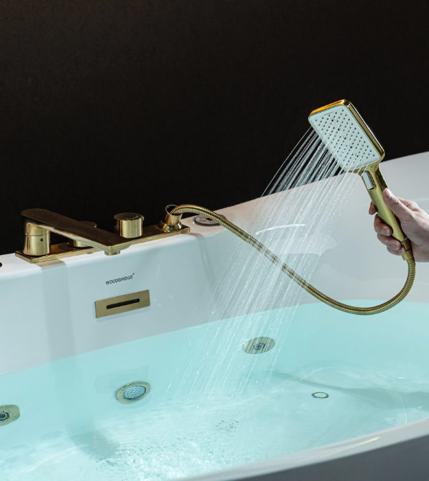 - Whirlpool and Air Bubble: Woodbridge BG400+F0045BG bathtub combined with whirlpool and air bubble jets in one tub