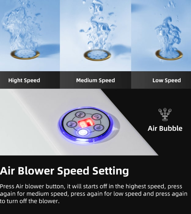- Gentle air massage, immerse yourself in thousands of tiny air bubbles, and relax to a soft tissue massage that aids in pain relief, and muscle relaxation, and promotes oxygen and blood flow in your body